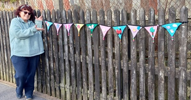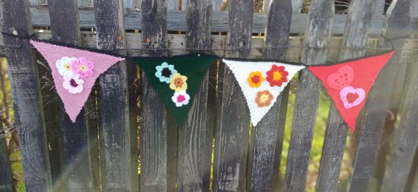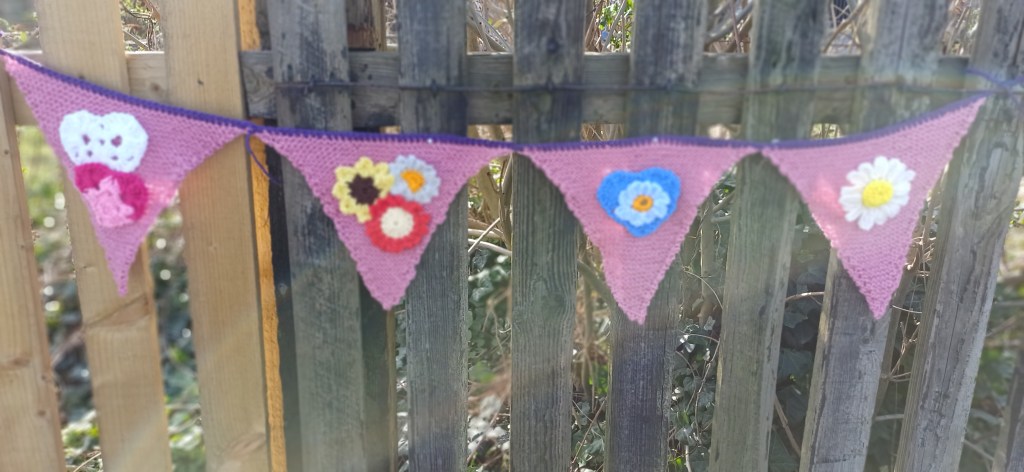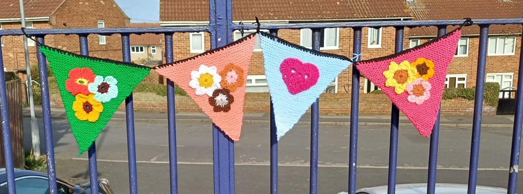 Spring has arrived at Seaham Station. Our Knicky Knack Knitters and Crochet groups have been busy creating yards of colourful bunting, adorned with flowers and hearts, to bring cheer to both Seaham residents using the station and visitors to our town.