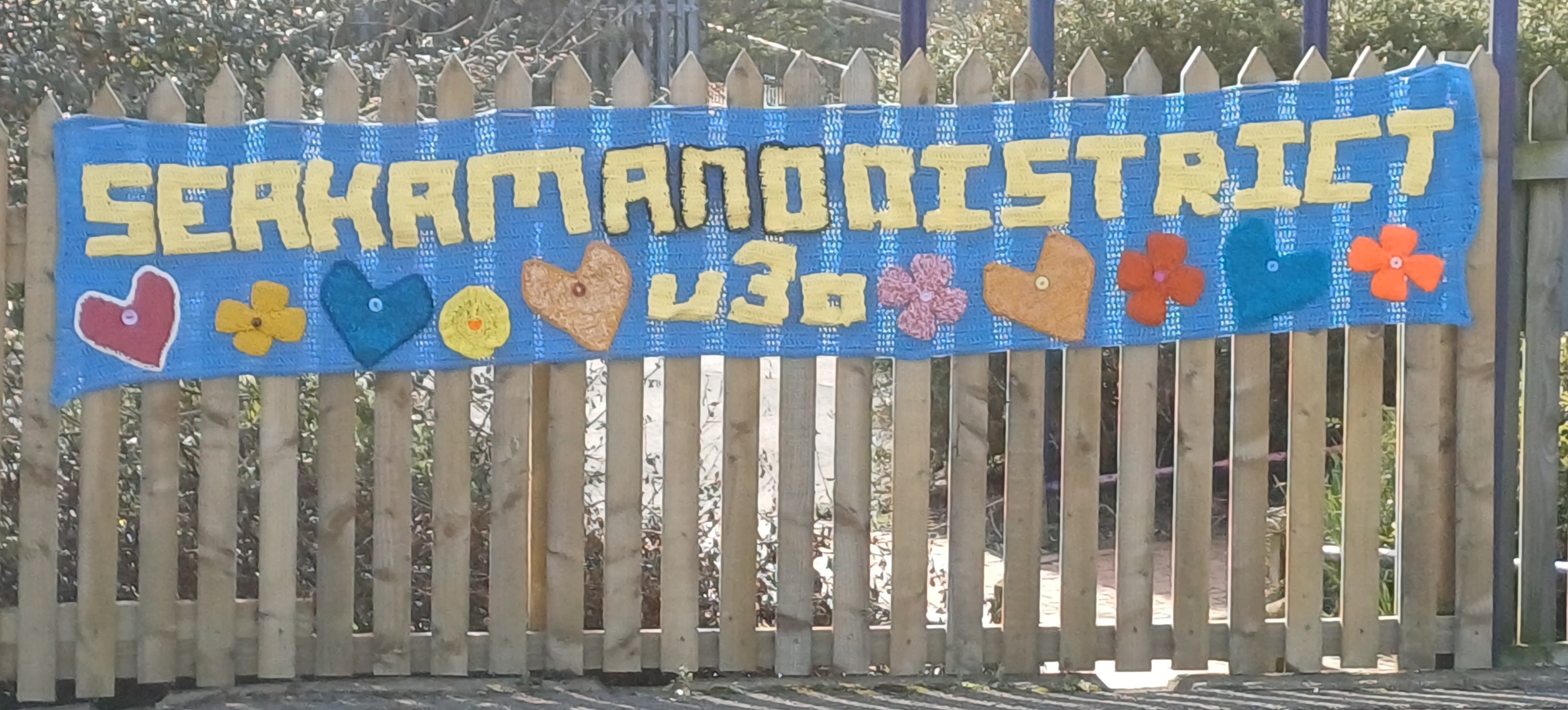 Spring has arrived at Seaham Station. Our Knicky Knack Knitters and Crochet groups have been busy creating yards of colourful bunting, adorned with flowers and hearts, to bring cheer to both Seaham residents using the station and visitors to our town.